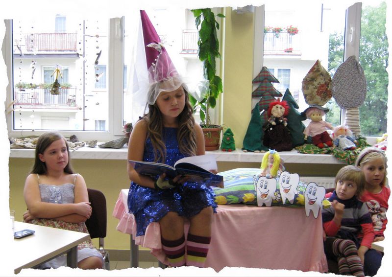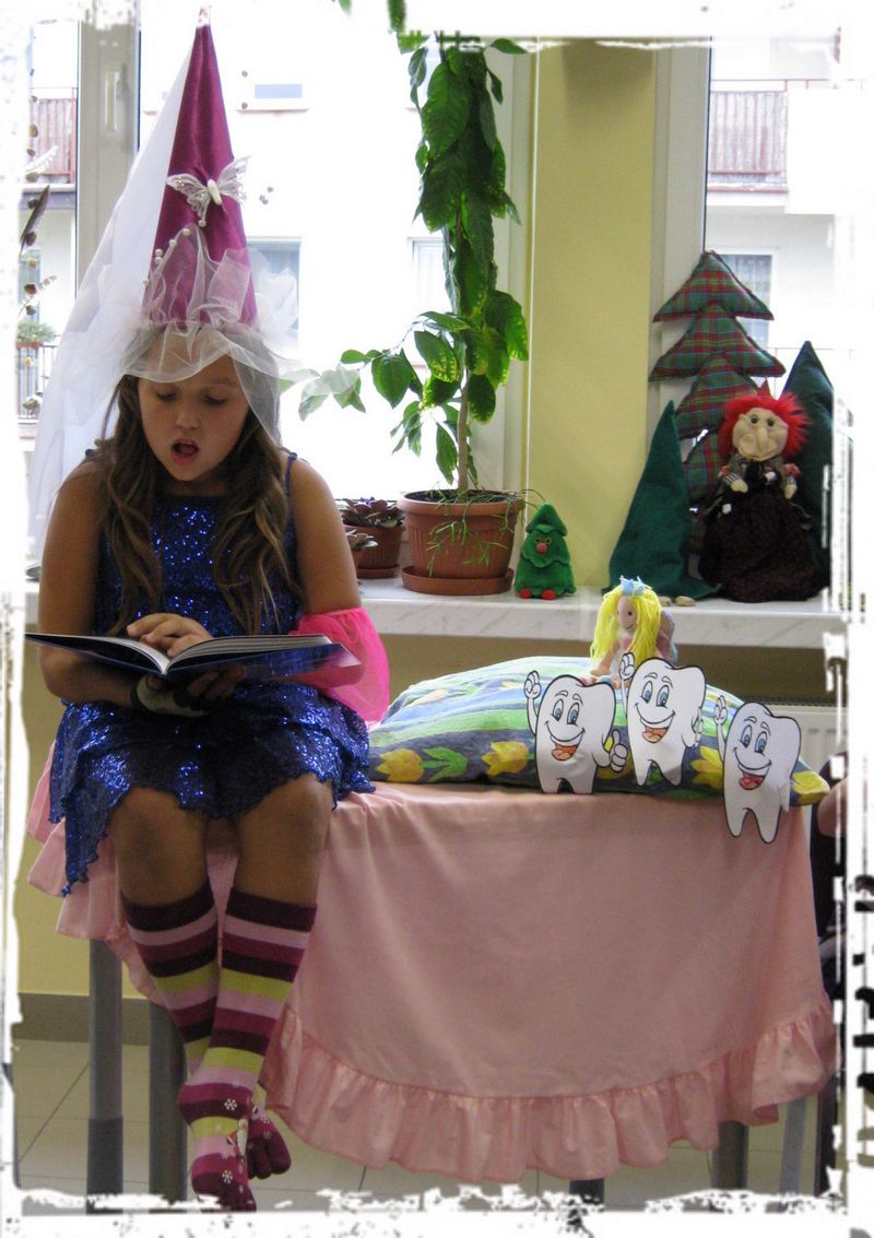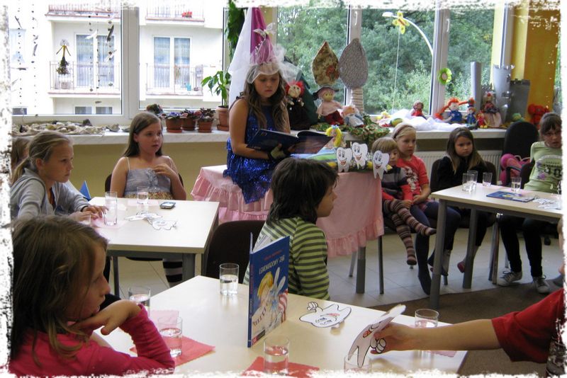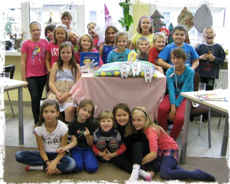 Tym razem wielbiciele fajnej książki, toczyli rozmowę na temat opowiadania Renaty Piątkowskiej „Lemoniadowy ząb”. Autorka w tym opowiadaniu przedstawia pełną humoru historię o wypadaniu mlecznych ząbków głównemu bohaterowi Marcinkowi oraz o Zębowej Wróżce, która za każdy wypadnięty ząb ofiaruje chłopcu wymarzony prezent. Również zachęca co jest najważniejsze do częstego używania szczotki i pasty do zębów.
