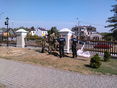 Miejsce gdzie znaleziono pociski zabezpieczyła dąbrowska policja do czasu przybycia saperów z Jednostki Wojskiej w Rzeszowie, którzy dokonali bezpiecznego usunięcia niewybuchów.